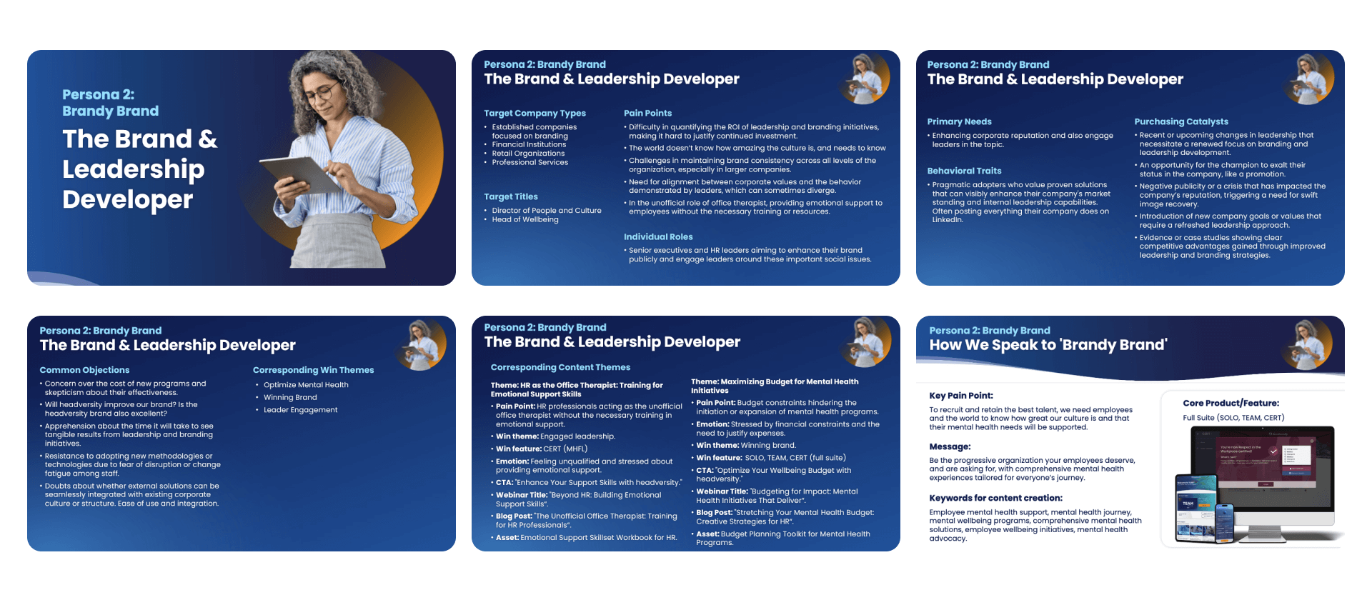 - One persona, for example, the “The Brand & Leadership Developer,” highlighted the importance of inclusive, actionable mental health content.