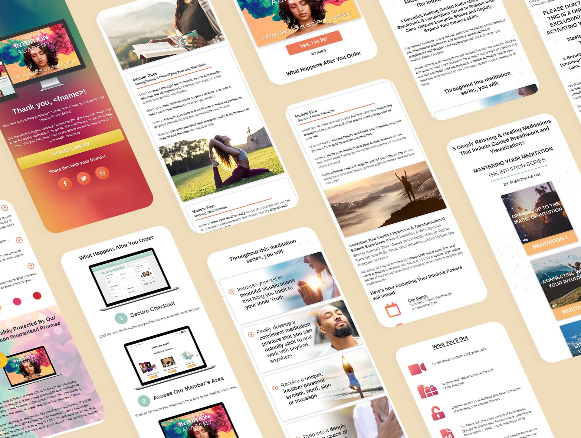 Intuition Academy (drop the "The" - It's cleaner) helps users reach their full potential and learn to trust their intuition when it comes to decision making. We needed to create a product from the ground up. Appropriate branding, vibrant and inviting product imagery and a glut of fully responsive sales pages were all needed to make this the best possible experience for the user. Following Daily Life brand guidelines, we made sure this was a product that Daily Life users would love.