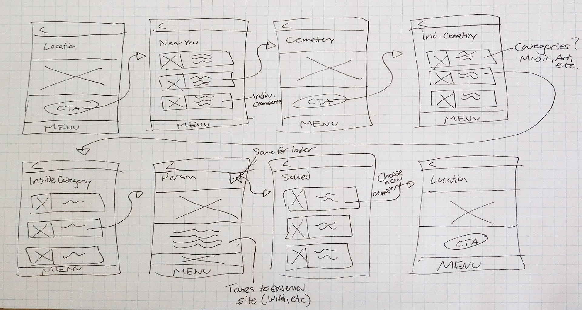 The challenge: How could we create a mobile app that guides travelers to nearby cemeteries while highlighting notable burials in an engaging, accessible, and playful way?